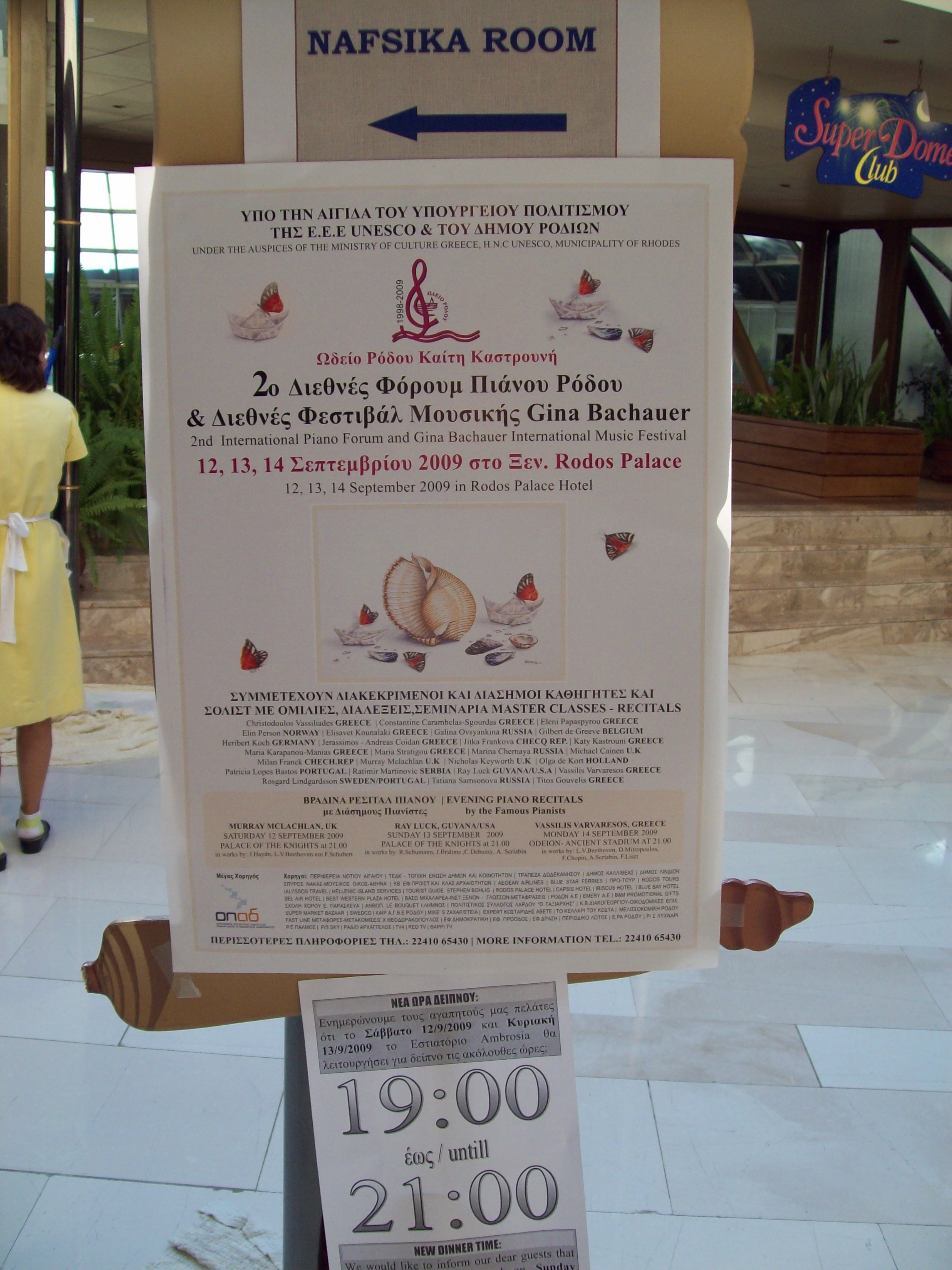 12 september 2009: Lezing-recital Samuel Maykapar and his piano music. The 2nd Rhodes International Piano Forum & Gina Bachauer International Music Festival, Rhodes, Greece.